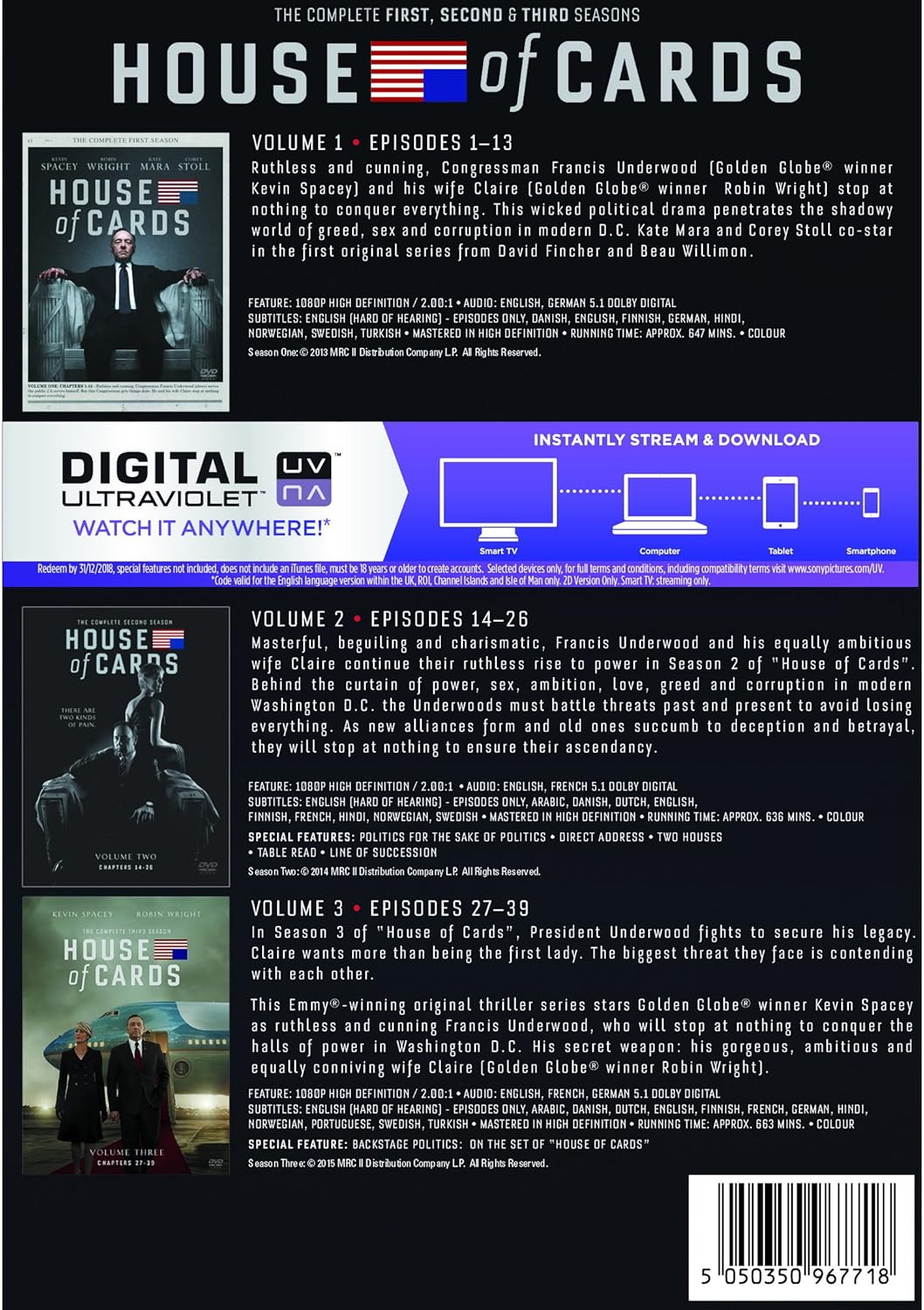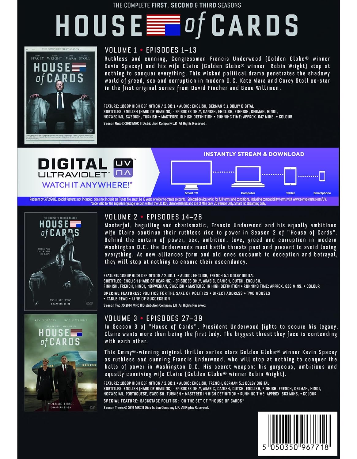 House Of Cards Seasons 1 To 3 Region 2 Dvd For Sale Online Ebay