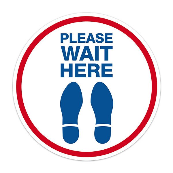 Aufkleber Covid19 Schutz Bitte Warten Sie Hier Auf Englisch Webwandtattoo Com