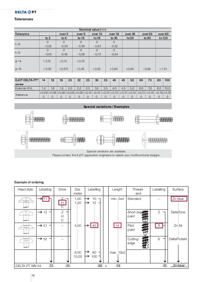 Ejot delta pt. Hotline Applications Engineer hotline@ejotcom 49 2751 Branislav Gunda bgunda@ejotsk 421 903 644 678 CAD a viac na ejotcom Po jednorázovej registrácii Vám. The FLOWpoint DELTA PT ® screw combines two successful EJOT methods in a unique new way The special point allows flowdrill fastening in materials without prehole, hole overlap problems are now a thing of the past The specially adjusted DELTA PT ® thread offers the best conditions for. The DELTA PT ® screw is the result of this optmisation process It meets the highest demand on precision and reliability as well as offering significant application advantages, for example for the design support with the EJOT DELTA CALC ® prognosis programme.
