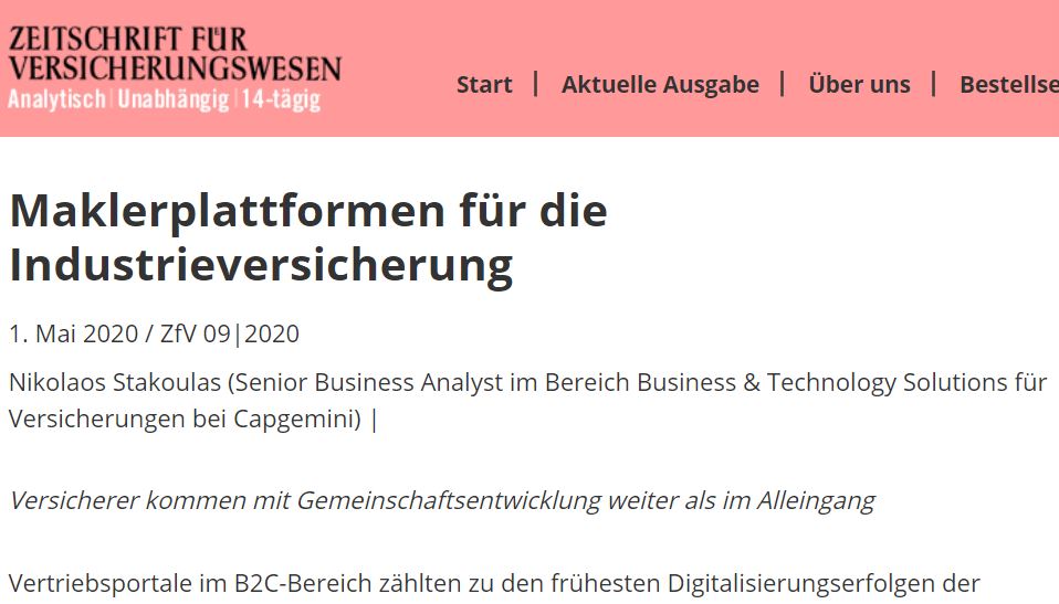 Capgeminide Maklerplattformen In Der Industrieversicherung Worauf Versicherer Bei Der Entwicklung Achten Sollten Erfahren Sie Von Unserem Experten Nikolaos Stakoulas In Der Aktuellen Zeitschrift Fur Versicherungswesen T Co