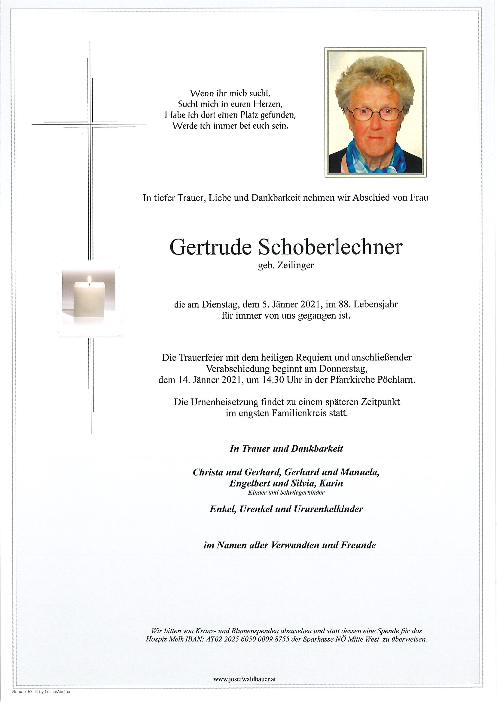 Parte Trauernachricht Hochreiter Hermine Bestattung Unterberger Gresten
