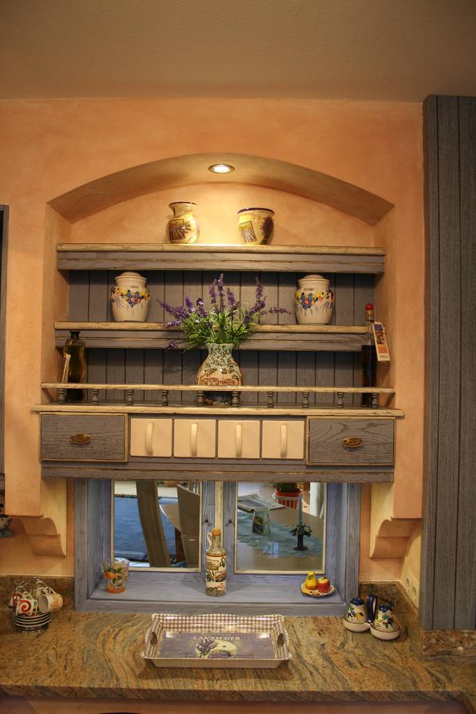 Individuelle Verkleidung Der Durchreiche Gemauerter Boden Mit Beleuchtung Keramikschutten Holzschutten Und Offene Regale Mediterrane Kuchen Von Villa Medici Landhauskuechen Aus Aschheim Mediterran Massivholz Mehrfarbig Homify
