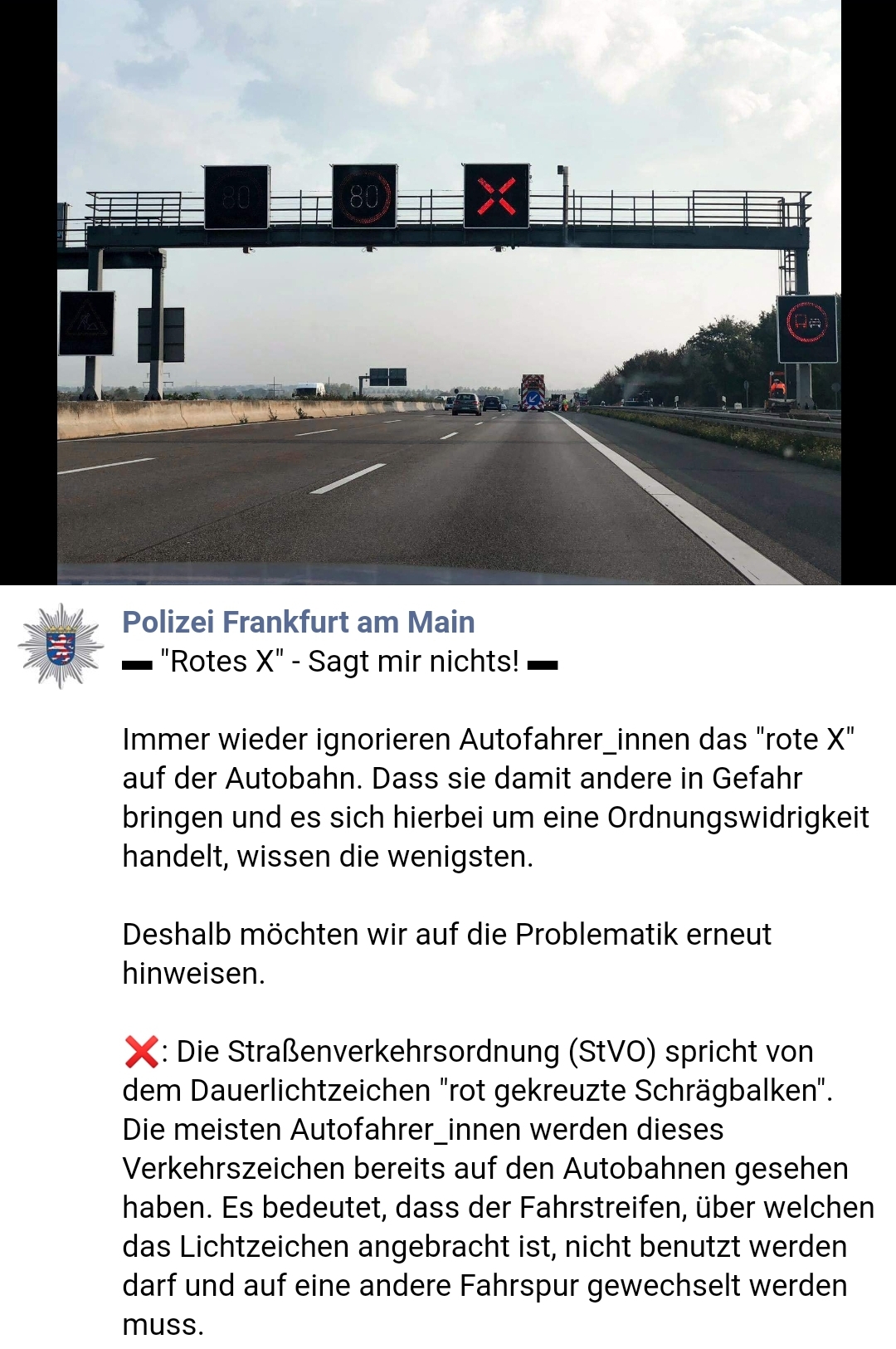 Polizei Frankfurt Am Main Rotes X Sagt Mir Nichts Immer Wieder Ignorieren Autofahrer Innen Das Rote X Auf Der Autobahn Dass Sie Damit Andere In Gefahr Bringen Und Es