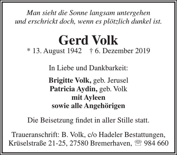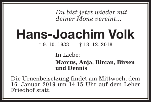 Hans Joachim Volk Gedenken Nordsee Zeitung