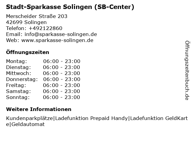 Stadt Sparkasse Solingen Sb Center Solingen Mitte Offnungszeiten Adresse Telefon