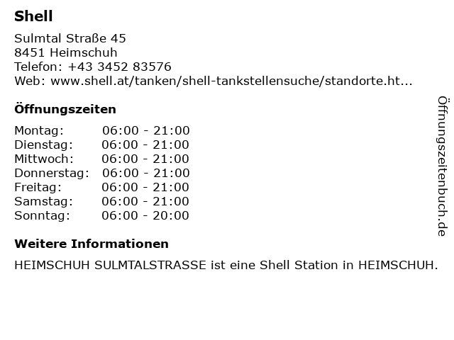 ᐅ Offnungszeiten Shell Tankstelle Sulmtalstrasse 45 In Heimschuh