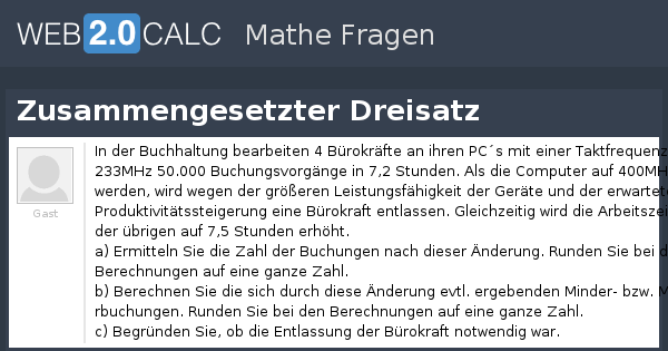 Frage Anzeigen Zusammengesetzter Dreisatz