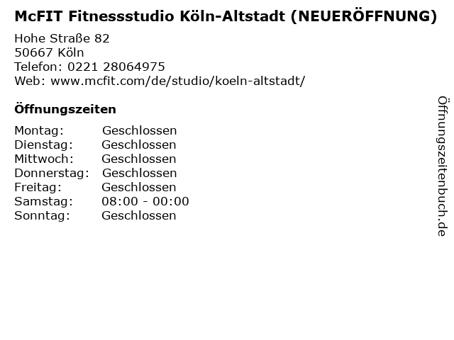 ᐅ Offnungszeiten Mcfit Hohe Strasse 62 68 In Koln