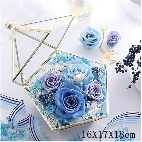 Amazon De Jldn Edle Blaue Verzauberte Rose Konservierte Blume Ewige Rose In Multilateralem