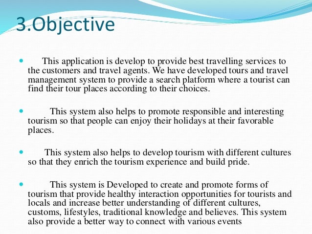 The EGov Travel Service (ETS) is a governmentwide, webbased, worldclass travel management service This streamlined service continually applies commercial best practices to realize travel efficiencies and deliver a transparent, accountable, and sustainable service that yields exceptional customer satisfaction. Get this project at http//nevonprojectscom/onlinetravelagencyproject/System automates the tour and travel agency working by providing all facilities online. Tour and travel management system 1 TOUR AND TRAVEL MANAGEMENT SYSTEM BY RAVINDRA CHAUDHARY SIDDHARTH ANAND UTKARSH JAIN 2 INTRODUCTION India one of the most beautiful location of South Asia is also among the popular countries of the world Tourist hub welcomes more than a 5 million tourists from different locations of the world A trip to.