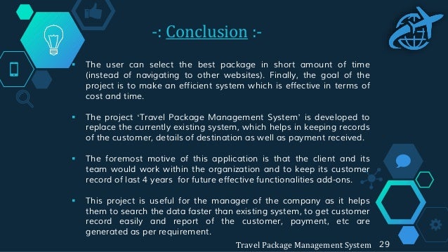 Travel management system. 21 INTRODUCTION 22 ANALYSIS MODEL 23 STUDY OF THE SYSTEM 24 SYSTEM. TOURS AND TRAVEL MANAGEMENT SYSTEM PROJECT REPORT PROJECT SOURCE AND PROJECT REPORT TOURS AND TRAVELS MANAGEMENT SYSTEM PROJECT SOURCE CODE TOURS AND TRAVELS MANAGEMENT SYSTEM PROJECT REPORT SPONSORED LINKS Tours and Travel Management System Introduction The Tours and Travel Management System is a web based application The main purpose of “Tours and trav provide a convenient way for a. Travel Management Software, also called Corporate Travel Management (CTM) Software, is designed to help companies coordinate the travel activities and expenses of its employees These products handle a variety of tasks, such as booking hotels and flights, coordinating the travel schedules of all traveling team members, and recording travel expenses.