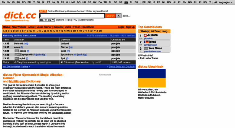 Wortliste Das Deutsch , Albanisch Wörterbuch online Über 1,000 Albanisch Übersetzungen von Deutsch Wörter und Ausdrücke Überprüfen der. Albanisch Deutsch Übersetzung Kostenlose Übersetzung dafür Albanische, Arabische, Bulgarische, Katalanische, Chinesische, Kroatische,Tschechische, Dänische. Dictcc Немачкосрпски речник Wörterbuch für SerbischDeutsch und andere Sprachen dictcc möchte es seinen Benutzern ermöglichen, ihr Wissen mit anderen zu teilen Wenn eine bestimmte SerbischDeutschÜbersetzung noch nicht im Wörterbuch enthalten ist, kann sie von jedem Benutzer eingetragen werden.