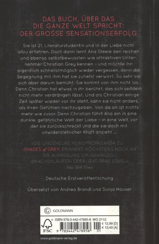 Check out this great listen on Audibleca Die Weltsensation geht weiter Band 2 von "Fifty Shades" aus Christians Sicht erzählt Ihre sinnliche Affäre endete in Schuldzuweisungen und gebrochenen Herzen, aber Christian Grey kann Anastasia Steele nicht vergessen Um sie. All was quiet on the "Fifty Shades of Grey" movie front for months, aside from the occasional actor offering to do fullfrontal, but we finally got an update on Monday The film, based on the erotic novel/Twilight fanfiction by EL James, will be written by Kelly Marcel, whose credits include the forthcoming Tom Hanks vehicle "Saving Mr Banks" and "Terra Nova," leaving some curious how. Darker Fifty Shades of Grey Gefährliche Liebe von Christian selbst erzählt Die Weltsensation geht weiter Band 2 von "Fifty Shades" aus Christians Sicht erzählt ©17 Goldmann Verlag Übersetzung von Andrea Brandl, Karin Dufner, Sonja Hauser, Christine Heinzius und Ulrike Laszlo (P)17 der Hörverlag.