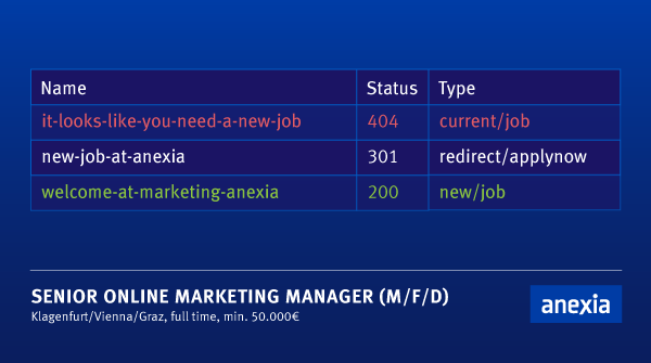 Anexia Wanted Senior Online Marketing Manager Get Out Of Your Current 404 Error And Start A New Adventure Challenge Experience Try A Redirect And Apply Now