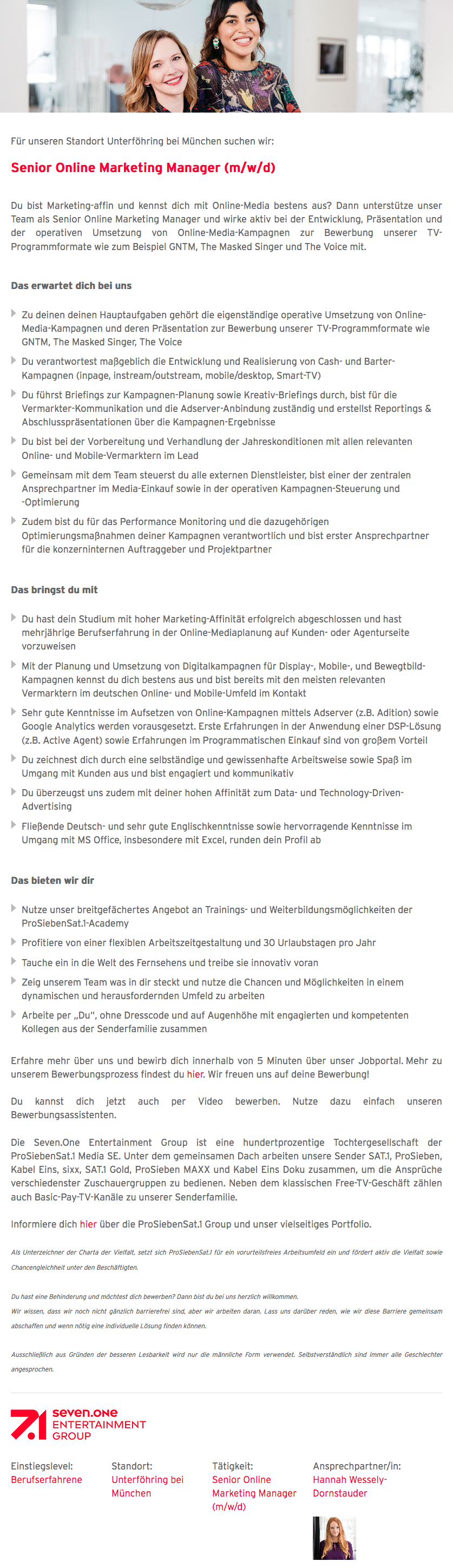 Senior Online Marketing Manager M W D Bei Seven One Entertainment Group Gmbh Dwdl Jobs