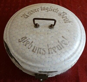 Vintage Brotkasten Unser lich Brot Gib Uns Heute Brotdose Emaille Ebay