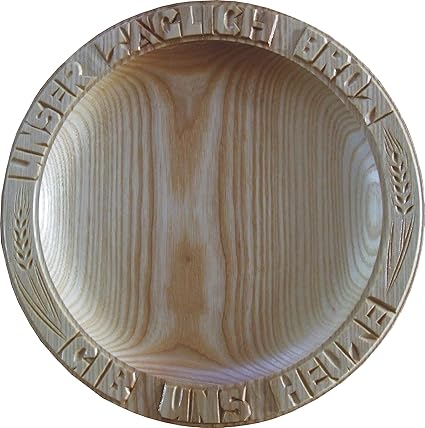 Decowa Brotteller Handgeschnitzt 26 27 Cm Unser lich Brot Gib Uns Heute Amazon De Kuche Haushalt