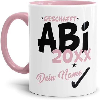 Tassendruck Abi Tasse Geschafft Abi xx Selbst Gestalten Mit Jahr Und Name Zum Bestandenen Abitur Schule Lehrer Personalisierte Geschenk Idee Innen Henkel Rosa Amazon De Kuche Haushalt