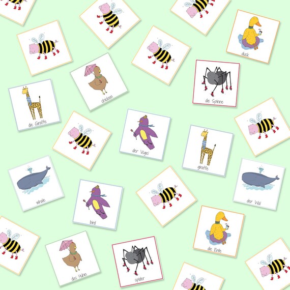 Englisch Deutsch Zweisprachige Tierspeicher Spiel Tiere Etsy