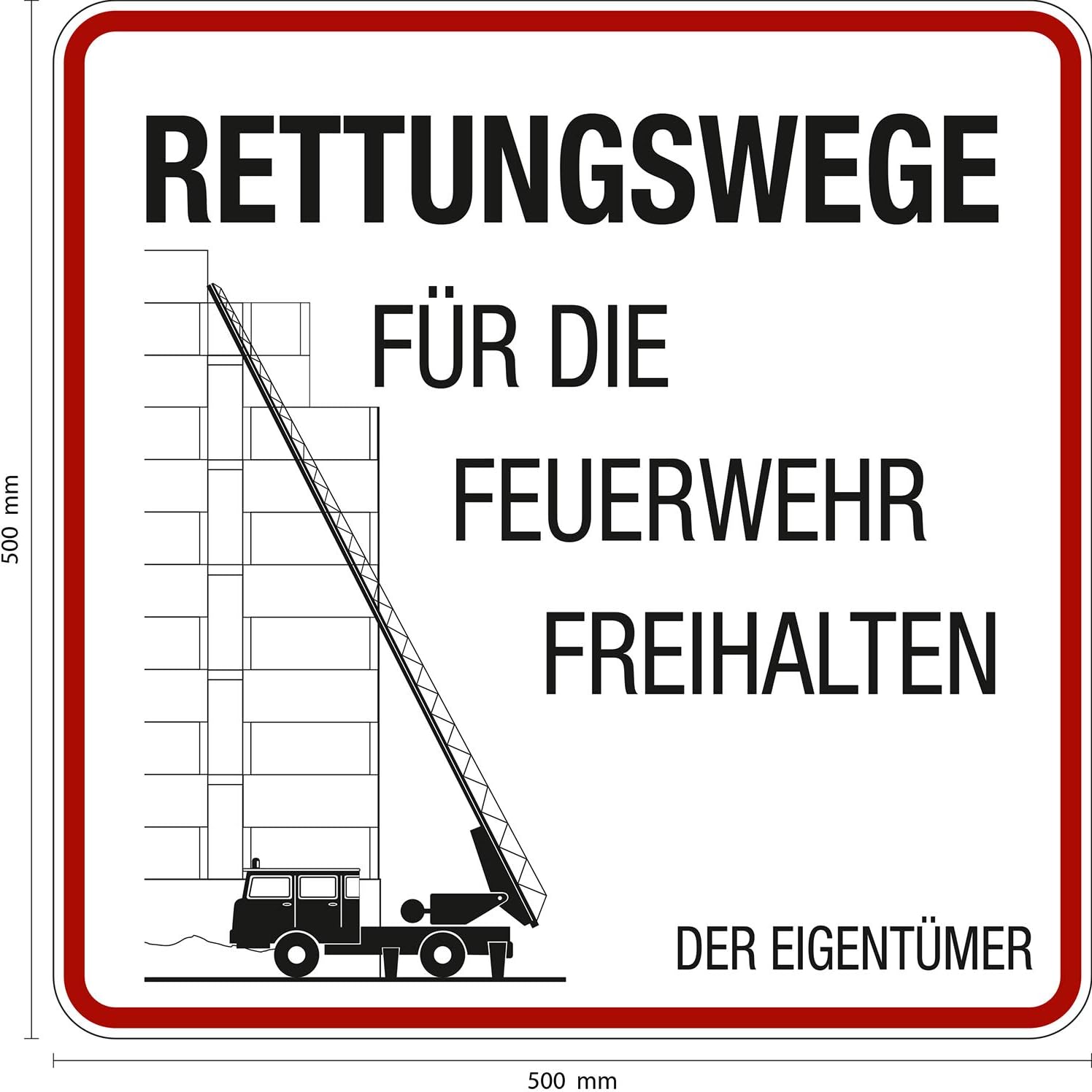 Rettungswege Fur Die Feuerwehr Freihalten Aluminium 500 X 500 Mm Brandschutzzeichen Schild 50 X 50 Cm Amazon De Baumarkt