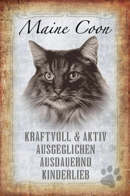 Blechschild Katze Steckbrief Maine Coon Metallschild Wanddeko x30 Tin Sign Ebay