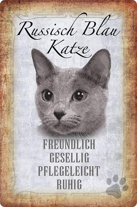 Amazon De Blechschild Katze Steckbrief Russisch Blau Metallschild Wanddeko x30 Tin Sign
