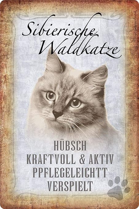 Amazon De Blechschild Katze Steckbrief Sibierische Wald Metallschild Deko x30 Tin Sign