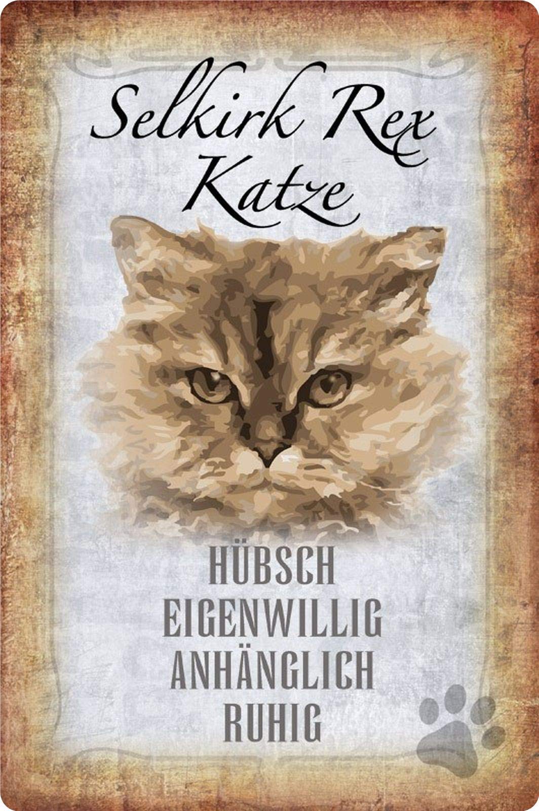 Amazon De Blechschild Katze Steckbrief Selkirk Rex Metallschild Wanddeko x30 Tin Sign