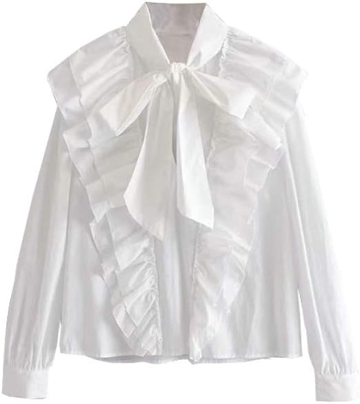Nirangwoz Damen Gekrauseltes Weisses Hemd Baumwolle Langarm Volltonfarbe Fliege Ausschnitt Buro Damen Overalls Amazon De Kuche Haushalt