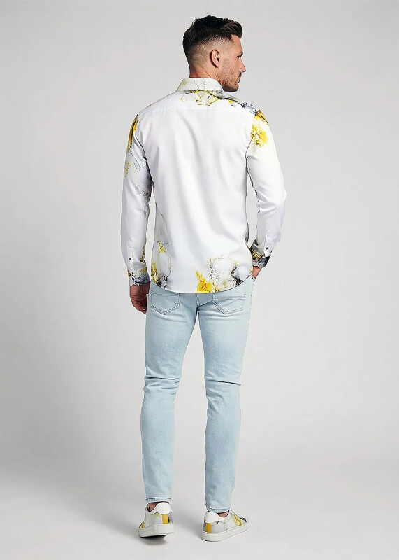 Nebula Weisses Hemd Mit Gelb Grauen Effekten Germens