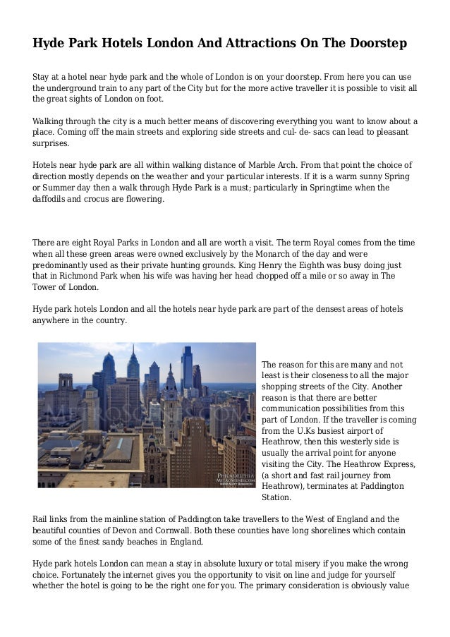 SAVenuescom features hotels in Hyde Park that range from budget to luxury and include resorts, inns, boutique hotels and larger guest houses All our Hyde Park hotel accommodation offers the kind of service you would expect when staying at an hotel ensuite rooms, public areas, guest lounges, and dining areas for breakfast and dinner (lunch. Now £41 on Tripadvisor The Royale Chulan Hyde Park Hotel London, London See 606 traveller reviews, 450 candid photos, and great deals for The Royale Chulan Hyde Park Hotel London, ranked #795 of 1,157 hotels in London and rated 3 of 5 at Tripadvisor Prices are calculated as of 11/01/21 based on a checkin date of 24/01/21. Hyde Park is walking distance from the front entrance of our hotel, Corus Hyde Park Hotel We welcome many guests each year who wish to visit Hyde Park and tick many of the things listed below off their todo list Our weekend bliss offer currently includes 15% off our best available rate when you book a twonight city break at our hotel.