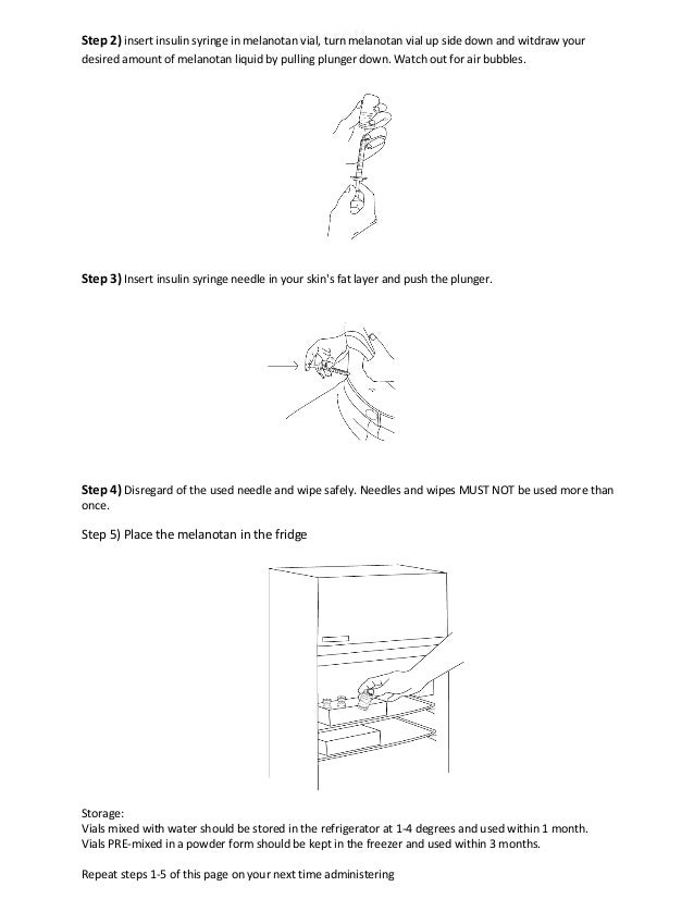 Um die erste Vial mit 10mg Melanotan II an zu mischen, benötigen Sie genau 1ml AmpuWa Schnipsen Sie die farbige Cap der Melanotan Vial ab und füllen Sie genau 1ml in die Vial Um eine optimales Mischergebnis zu erreichen, lassen Sie die Vial kurz kreisen 12 Erste Injektion. MelanotanII is POSSIBLY SAFE when used under medical supervision for treating ED (erectile dysfunction) It may cause nausea, stomach cramps, decreased appetite, flushing, tiredness, yawning, darkened skin, spontaneous erections of the penis, and other side effects. Das einzige Original Melanotan 2 – Nasal Spray mg – eine Flasche.