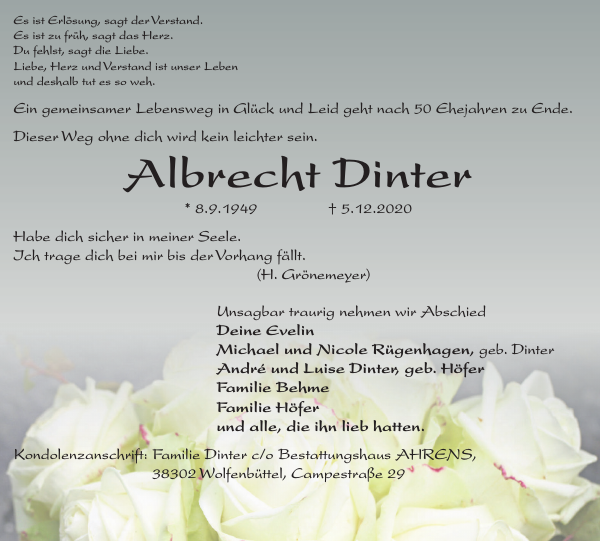 Albrecht Dinter Traueranzeige Braunschweiger Zeitung