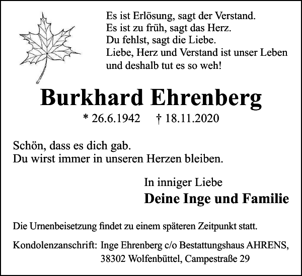 Burkhard Ehrenberg Traueranzeige Braunschweiger Zeitung