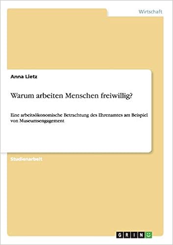 Warum Arbeiten Menschen Freiwillig Eine Arbeitsokonomische Betrachtung Des Ehrenamtes Am Beispiel Von Museumsengagement German Edition Lietz Anna Amazon Com Books