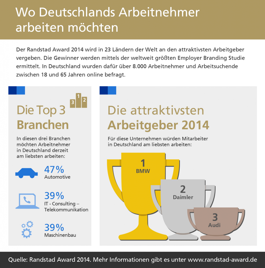 Randstad Award 14 Bmw Daimler Und Audi Sind Die Attraktivsten Arbeitgeber Deutschlands Crosswater Job Guide