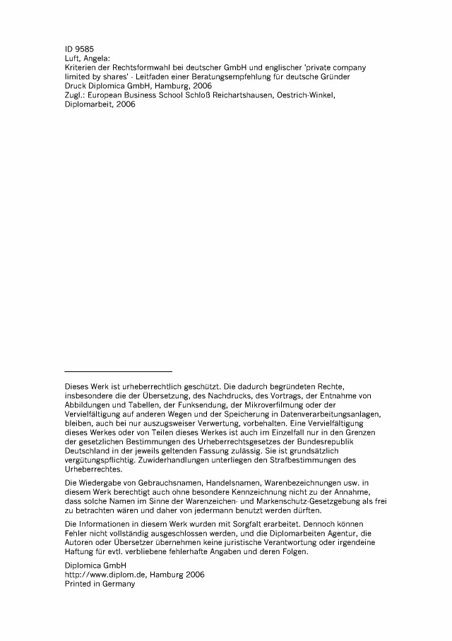 Bod Leseprobe Kriterien Der Rechtsformwahl Bei Deutscher Gmbh Und Englischer Private Company Limited By Shares
