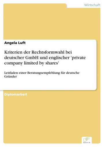 Kriterien Der Rechtsformwahl Bei Deutscher Gmbh Und Englischer Private Company Limited By Shares Pdf Ebook Kaufen Ebooks Existenzgrundung Startup