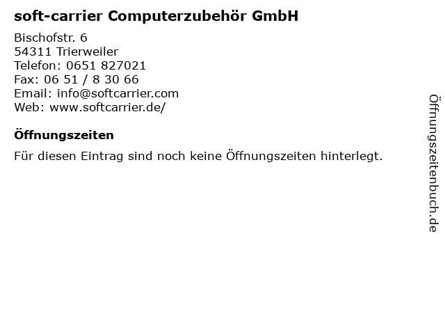 ᐅ Offnungszeiten Soft Carrier Computerzubehor Gmbh Bischofstr 6 In Trierweiler