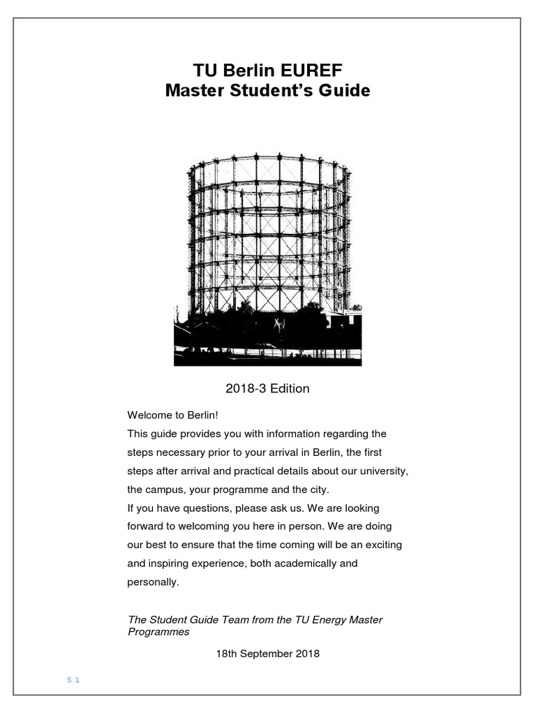Tu Berlin Euref Master Student S Guide 18 3 Edition Pharmacy Travel Visa
