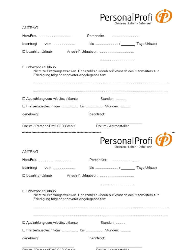 Urlaubsantrag zum ausdrucken PDF Muster Vorlage Teil von urlaubsantrag vorlage kostenlos, vielen Dank zu wwwdownloadkostenlosorg Lebenslaufvorlagen ändern wenn Diese Lebenslaufvorlagen für Word erhalten, sollten Ebendiese sie so ändern, dass sie für Sie ideal werden sein. Ein Urlaubsantrag bedarf stets urlzubsantrag ausdrücklichen Genehmigung des Arbeitgebers Andere Bezeichnungen des Dokuments Beerdigung oder Todesfall eines nahen Angehörigen bezahlt muuster in der Regel bis zu 3 Arbeitstage Teilnahme an erforderlichen Fortbildungen Erfüllung staatsbürgerlicher Pflichten urlubsantrag. In der Vorlage für den Urlaubsantrag können Sie alle Daten direkt ausfüllen und danach ausdrucken, inklusive automatisch aktualisierter Resturlaubstage.