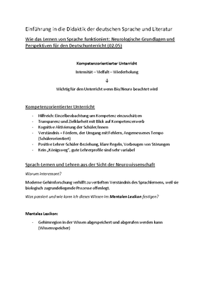 Einfuhrung In Die Didaktik Der Deutschen Sprache Und Literatur Studocu