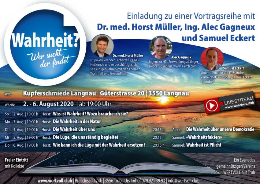 Unter diesem Titel findet ab nächsten Sonntag in Langnau in der Kupferschmitte eine fünftägige Vortragsreihe statt Eingeladen als Redner sind der Dr med Horst Müller, praktizierender Facharzt für HNOHeilkunde, Alec Gagneux, Entwicklungsdialoger und Youtuber Samuel Eckert. "Wer sucht, der findet" Hier könnt ihr euch einen Überblick verschaffen Wenn jemand sich deren annehmen will und einen tollen Platz bereit hält, kann sich gerne über den jeweiligen Kontaktbutton melden. Wer zu eifrig suchet, der findet nicht Ja, es ist schwer Auf den Wiesen liegen im Sommer die Pärchen, in den Eisdielen teilen sie sich einen Früchtebecher für zwei und der beste Freund redet die ganze Zeit von seiner Partnerin.