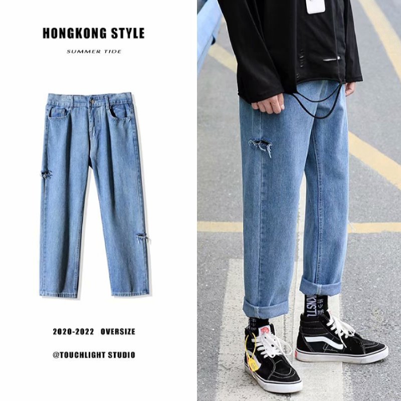 High Quality Seluar Jeans Men S Long Pants Straight Cut Jeans Loose Denim Trousers Men Light Blue Seluar Lelaki Jeans Budak Shopee Malaysia