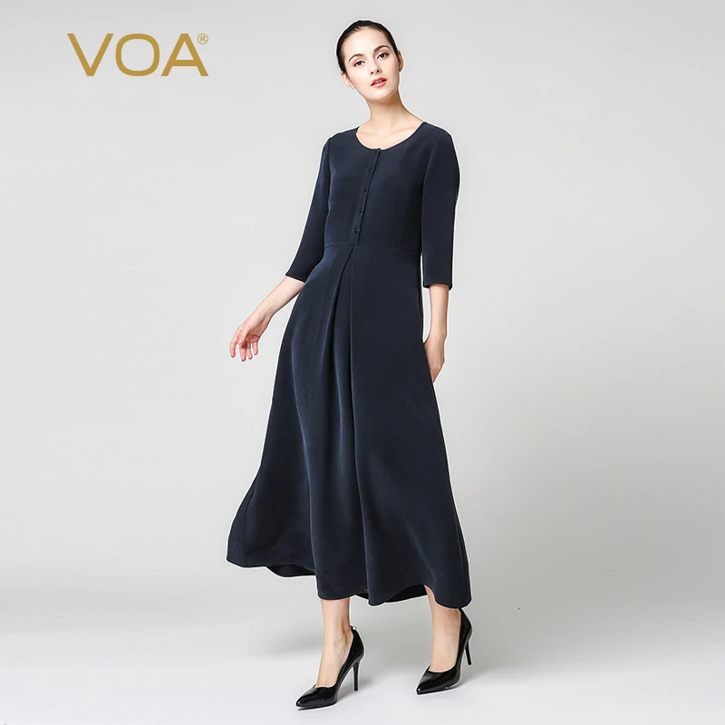 Voa Schwerer Seide Plus Grosse Navy Blau Kleid Schlank Einfache Vintage Elegante Kurze A Line Maxi Lange Kleider Frauen Kleidung 213 Dress Autumn Maxi Long Dresslong Dress Aliexpress