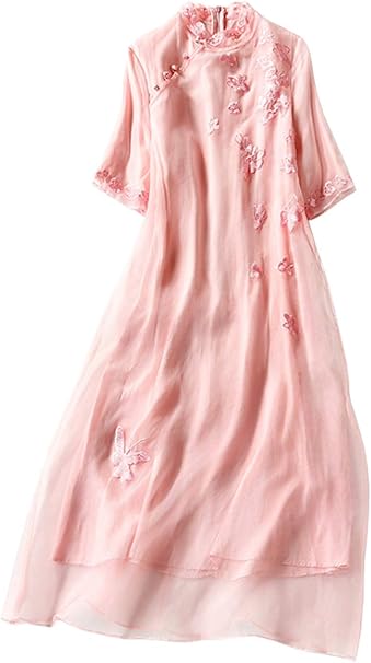 Hangerfeng Alltagskleid Seide Organdy Stickerei Modifiziert Cheongsam Mock Hals Chinesischen Kleid 2224 Amazon De Bekleidung