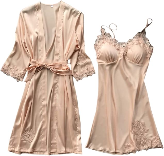 Frauen Seide Satin Kimono Bademantel Nachthemd Kleid Spitze Leibchen Pyjama Set Nachtwasche Amazon De Bekleidung
