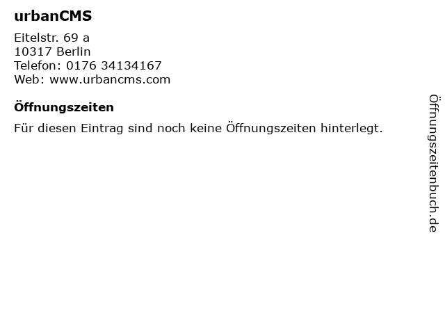 ᐅ Offnungszeiten Urbancms Eitelstr 69 A In Berlin