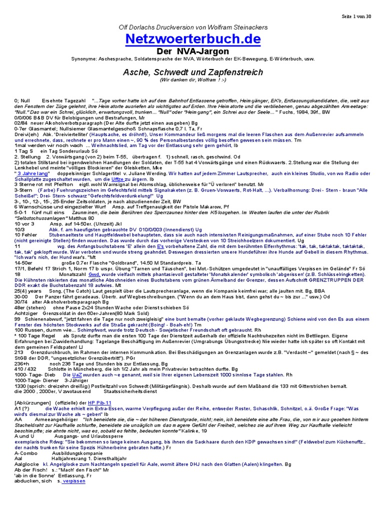 Asche Schwedt Zapfenstreich Der Nva Jargon Nva Soldaten De