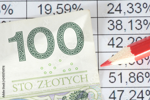 Ein Polnische Zloty Pln Geldschein Roter Stift Als Symbol Fur Sparen Und Eine Tabellenkalkulation Mit Zahlen Und Prozenten Buy This Stock Photo And Explore Similar Images At Adobe Stock Adobe Stock